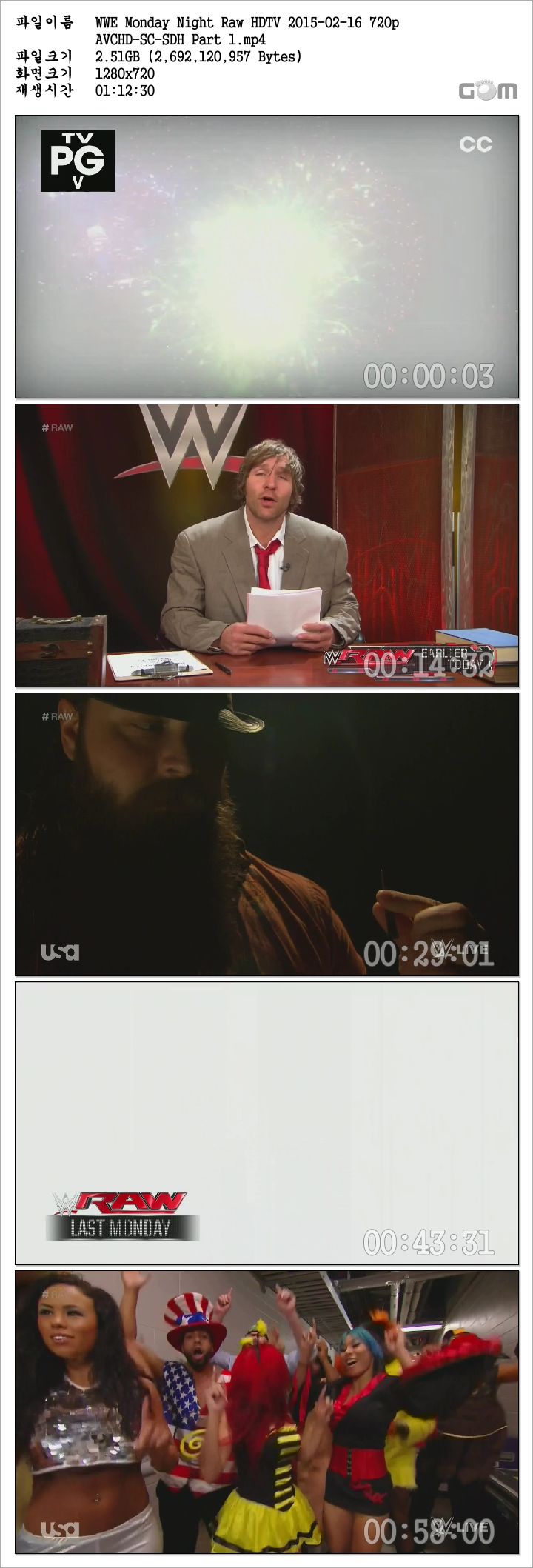 | WWE Monday Night Raw HDTV 2015-02-16 720p AVCHD-SC-SDH Part 1.mp4 | 2.5 G | MP4 | - | 1280x720 |