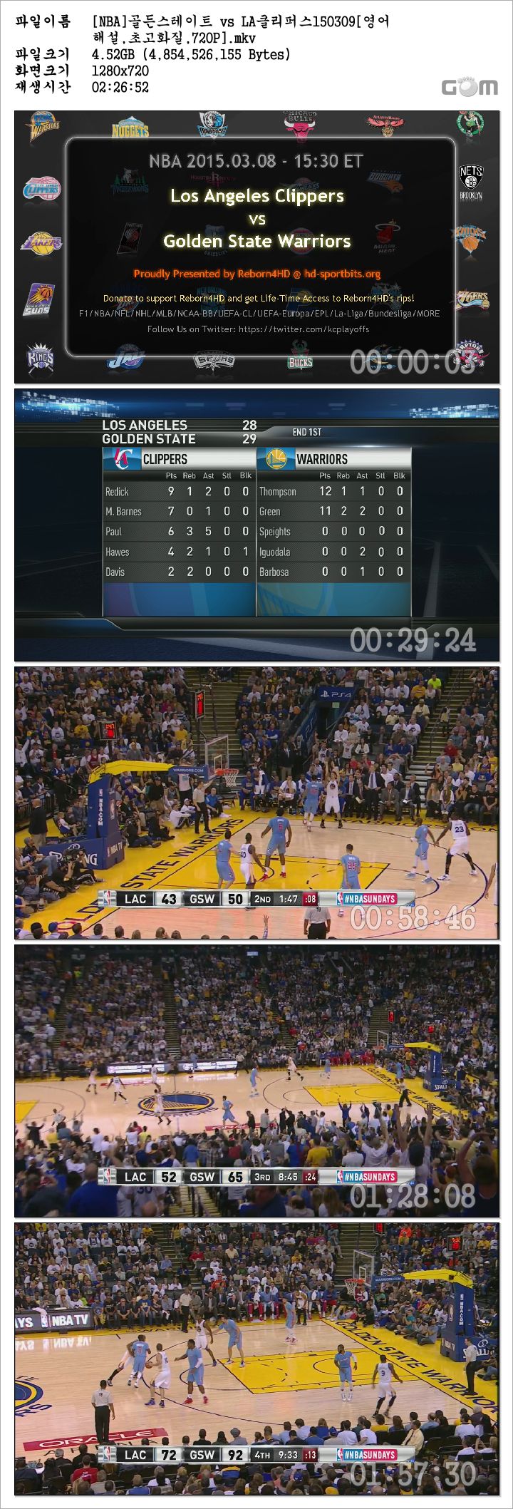 [NBA]골든스테이트 vs LA클리퍼스150309[영어해설,초고화질,720P]