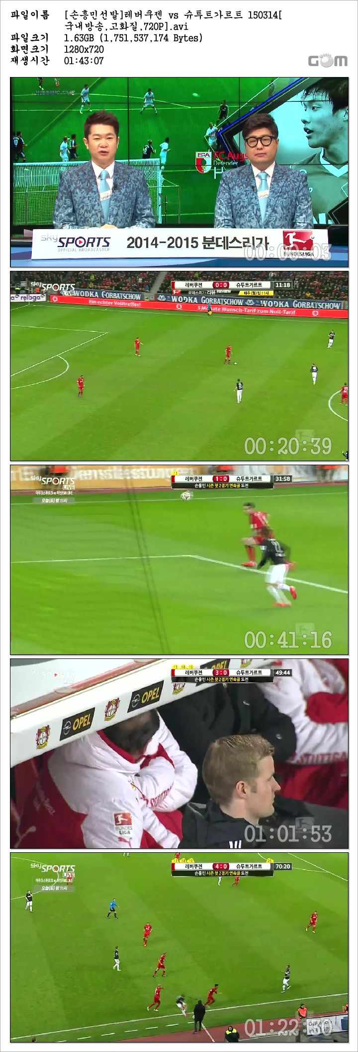 [손흥민선발]레버쿠젠 vs 슈투트가르트 150314[국내방송,고화질,720P].avi 1.6 G AVI - -