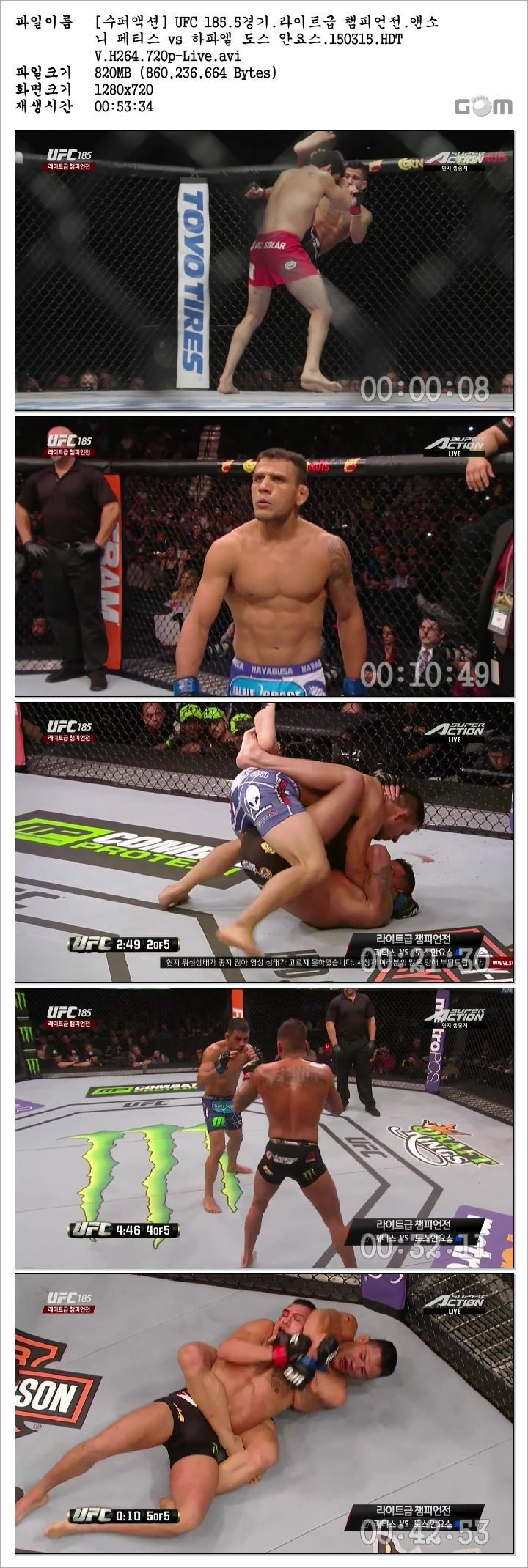 | [수퍼액션] UFC 185.5경기.라이트급 챔피언전.앤소니 페티스 vs 하파엘 도스 안요스.150315.HDTV.H264.720p-Live.avi | 820.4 M | AVI | - | 1280x720 |