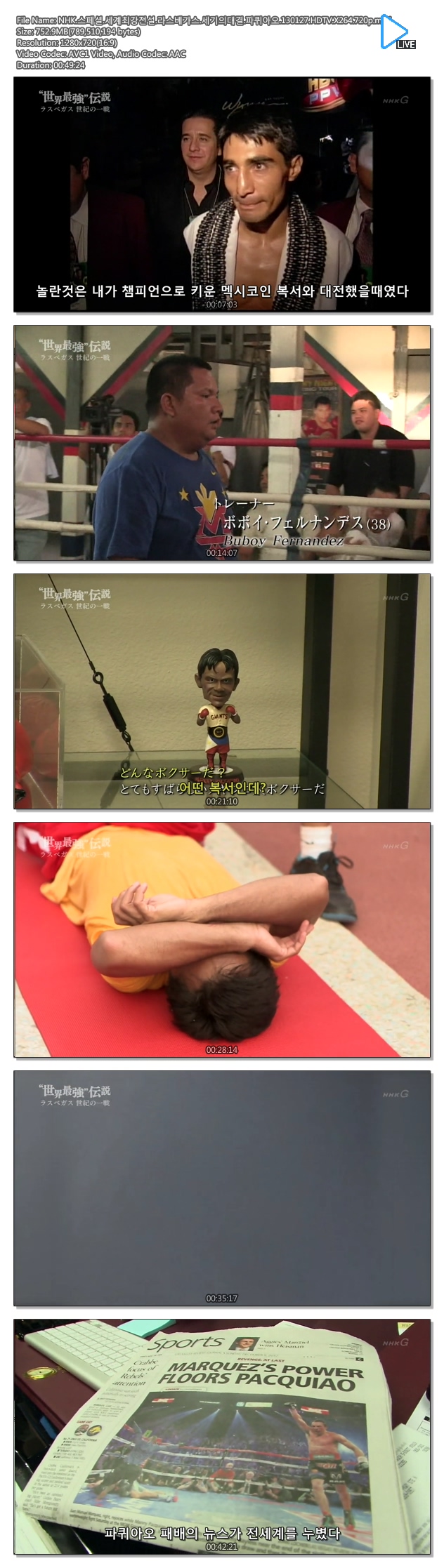 | NHK.스페셜.세계최강전설.라스베가스.세기의대결.파퀴아오.130127.HDTV.X264.720p.mp4 | 752.9 M | MP4 | - | 1280x720 |