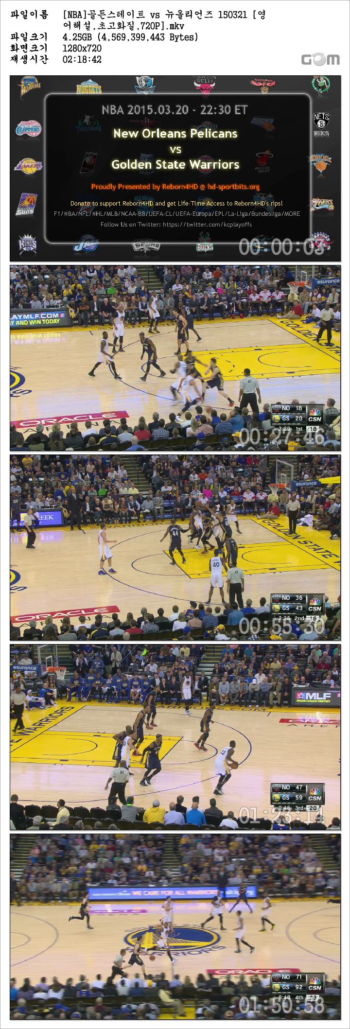 [NBA]골든스테이트 vs 뉴올리언즈 150321 [영어해설,초고화질,720P].mkv 4.3 G MKV - -