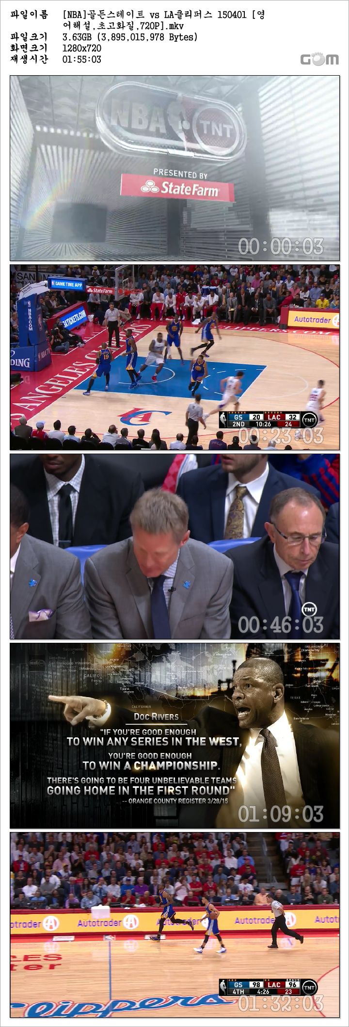 [NBA]골든스테이트 vs LA클리퍼스 150401 [영어해설,초고화질,720P].mkv 3.6 G MKV - -