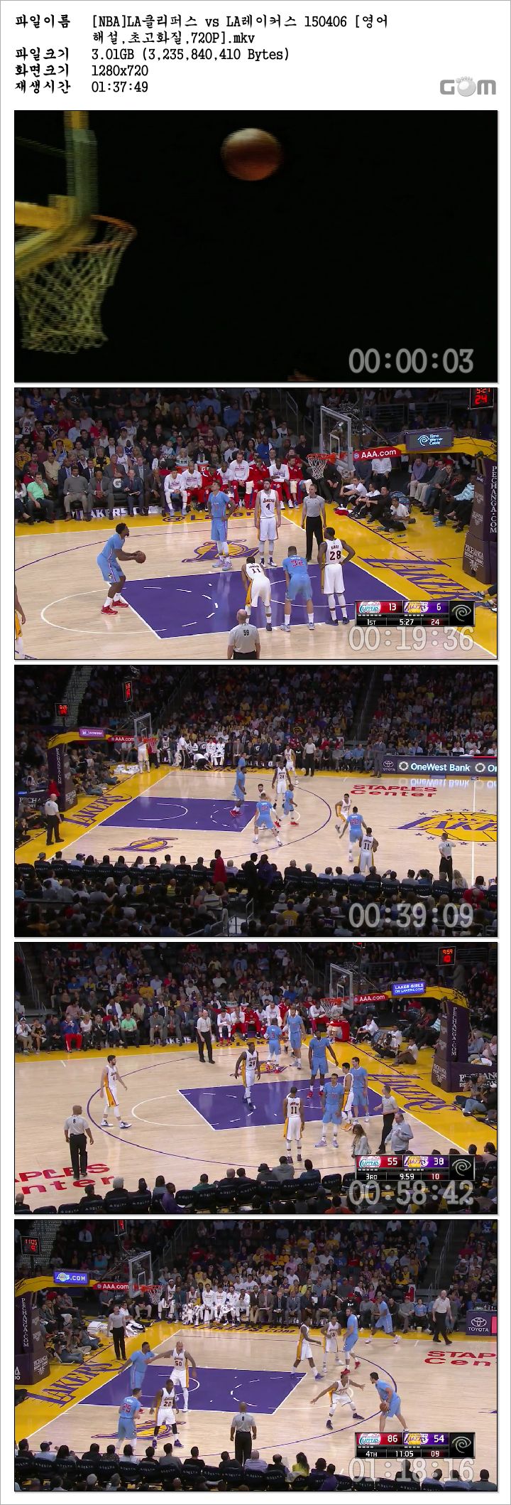 [NBA]LA클리퍼스 vs LA레이커스 150406 [영어해설,초고화질,720P].mkv 3 G MKV - -