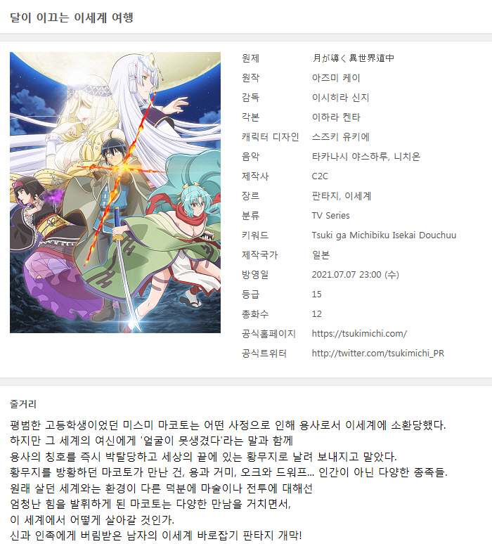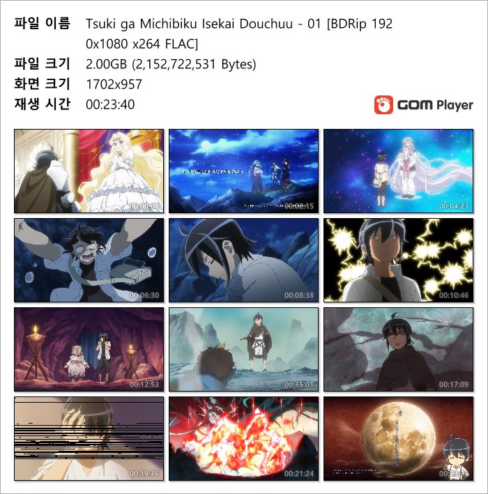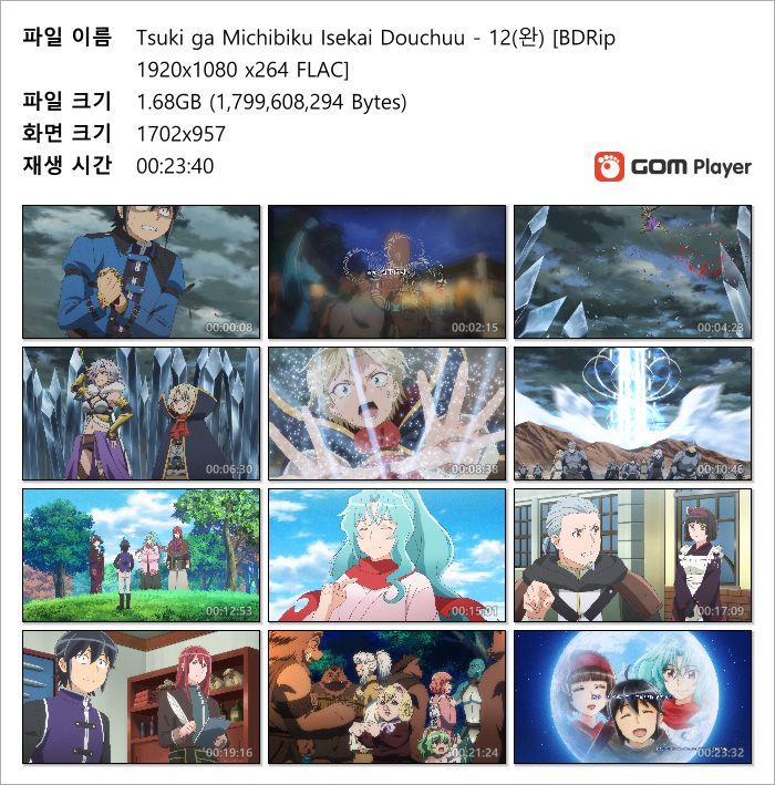 | Tsuki ga Michibiku Isekai Douchuu - 12(완) [BDRip 1920x1080 x264 FLAC].mkv | 1.7 G | MKV | 00:23:40 | 1920x1080 |