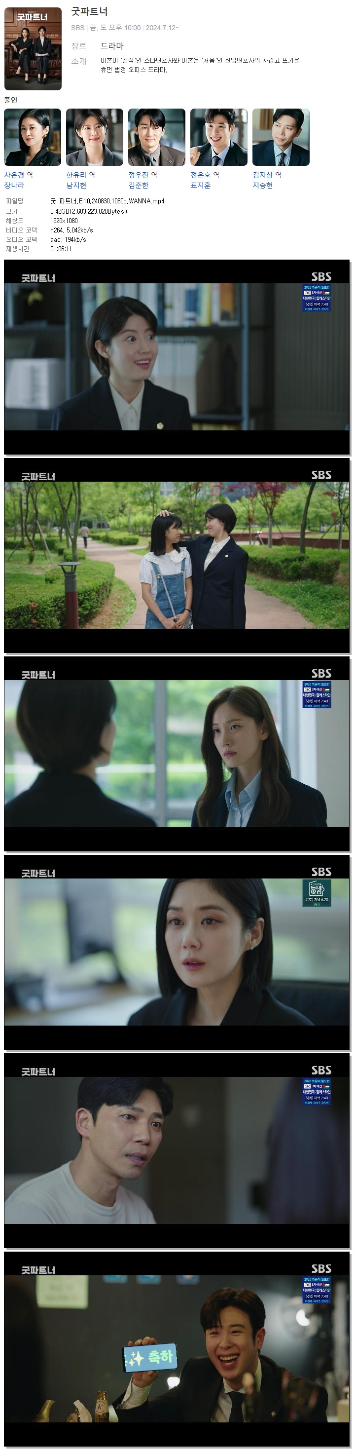 굿 파트너.E10.240830.1080p.WANNA.mp4 2.4 G MP4 01:06:11 1920x1080
