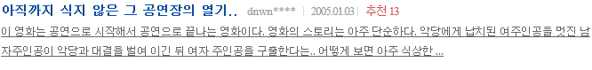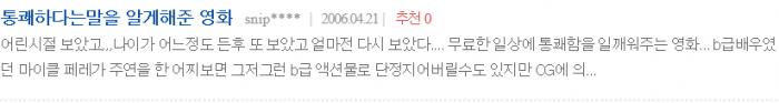 작품 평가 : IMDb 네티즌 평점 : 6.4/10 네이버 네티즌 평점 : 9.23/10