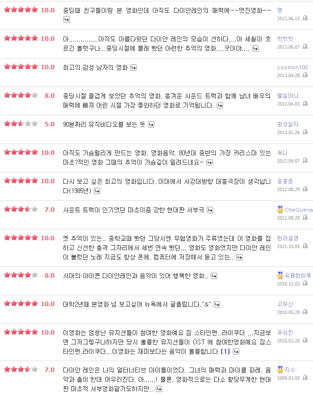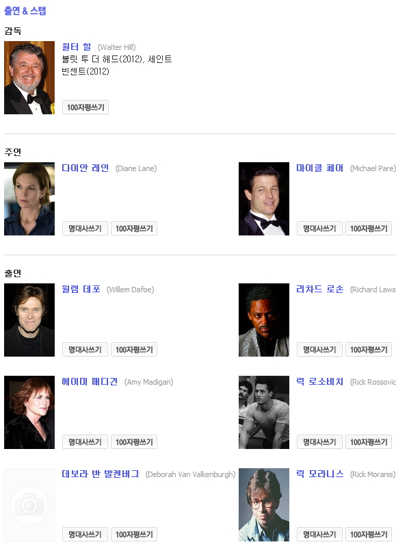 출연 배우 : 마이클 파레 Michael Pare 다이안 레인 Diane Lane