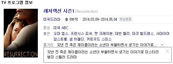 | Resurrection.US.S01E01.HDTV.XviD-FUM.smi | 109.2 K | SMI | - | - |