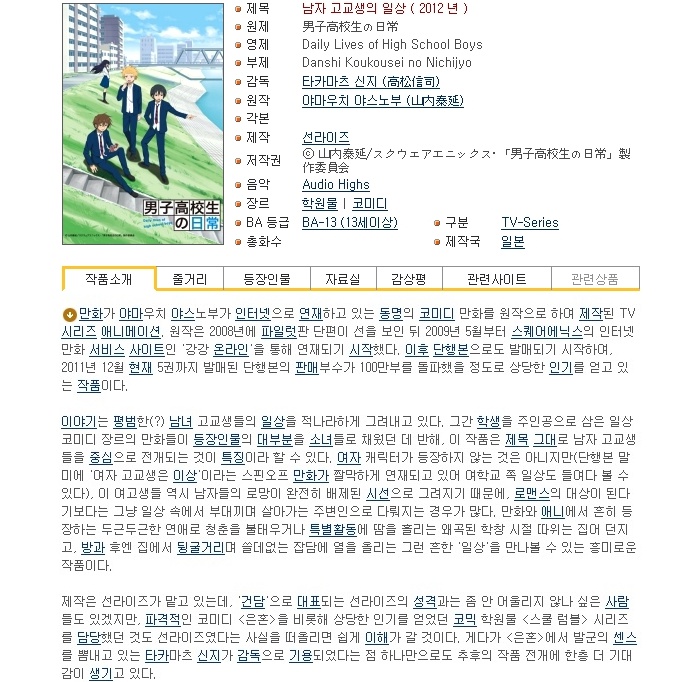 [코미디] 남자 고교생의 일상 - [01화~12화(완)] 704x396