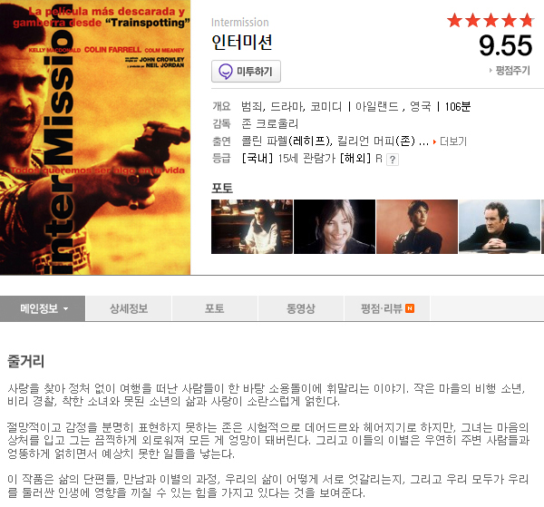 인터미션 Intermission 자체자막 여친과 헤어져 막장으로 치닫는 사람들의 소란스런 액션 코메디