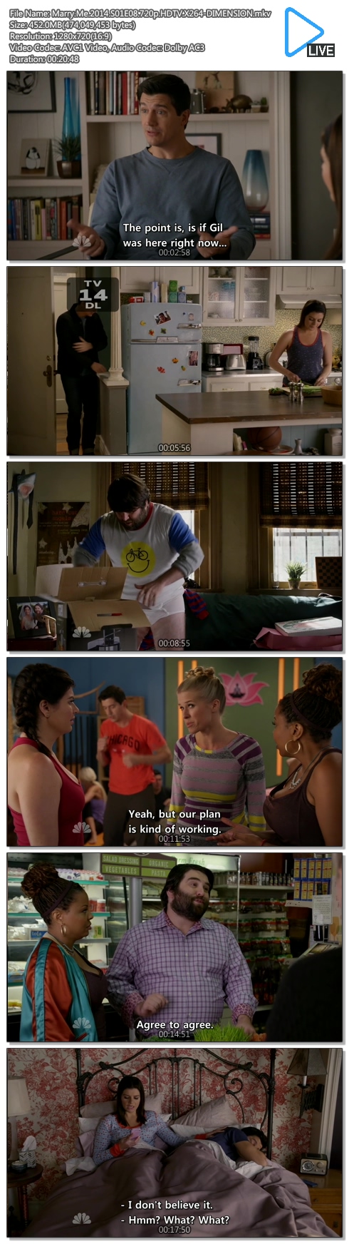 | Marry.Me.2014.S01E08.720p.HDTV.X264-DIMENSION.mkv | 452.1 M | MKV | - | 1280x720 |