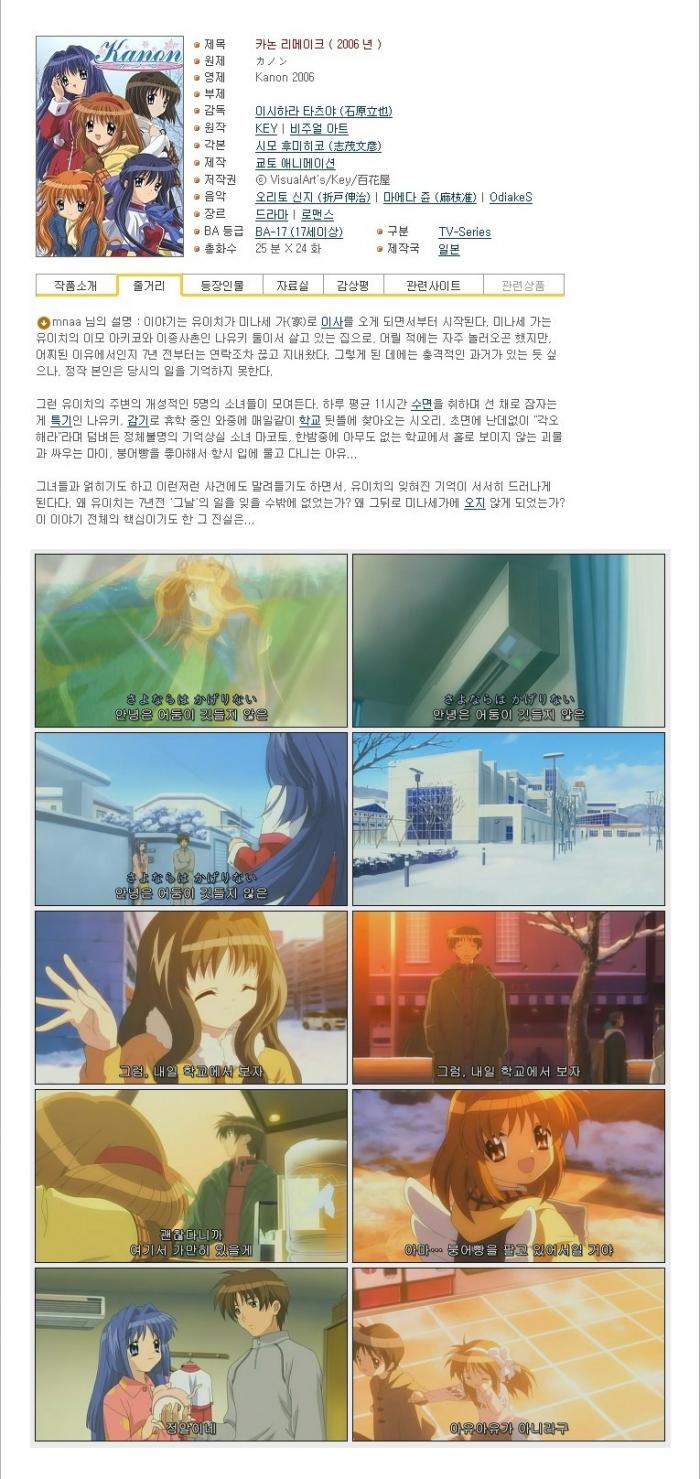 | 카논 리메이크 Kanon 2006 11.avi | 168.1 M | AVI | - | - |