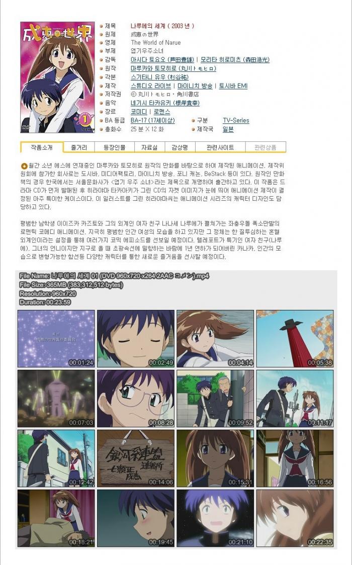| 나루에의 세계 01 (DVD 960x720 x264 2AAC コメン).smi | 19.8 K | SMI | - | - |