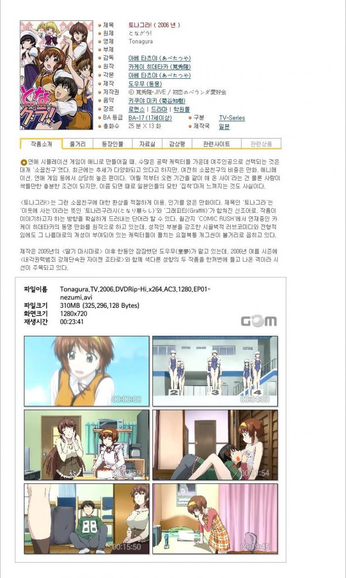 | Tonagura.TV.2006.DVDRip-Hi.x264.AC3.1280.EP05-nezumi.smi | 38.9 K | SMI | - | - |