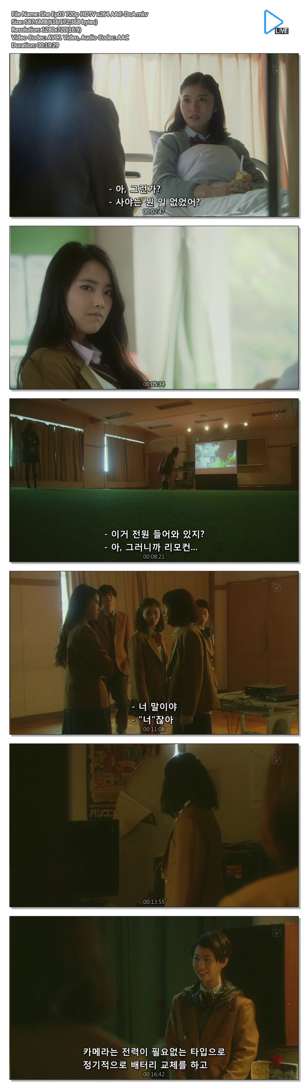 | She Ep03 720p HDTV x264 AAC-DoA.mkv | 587.6 M | MKV | - | 1280x720 |