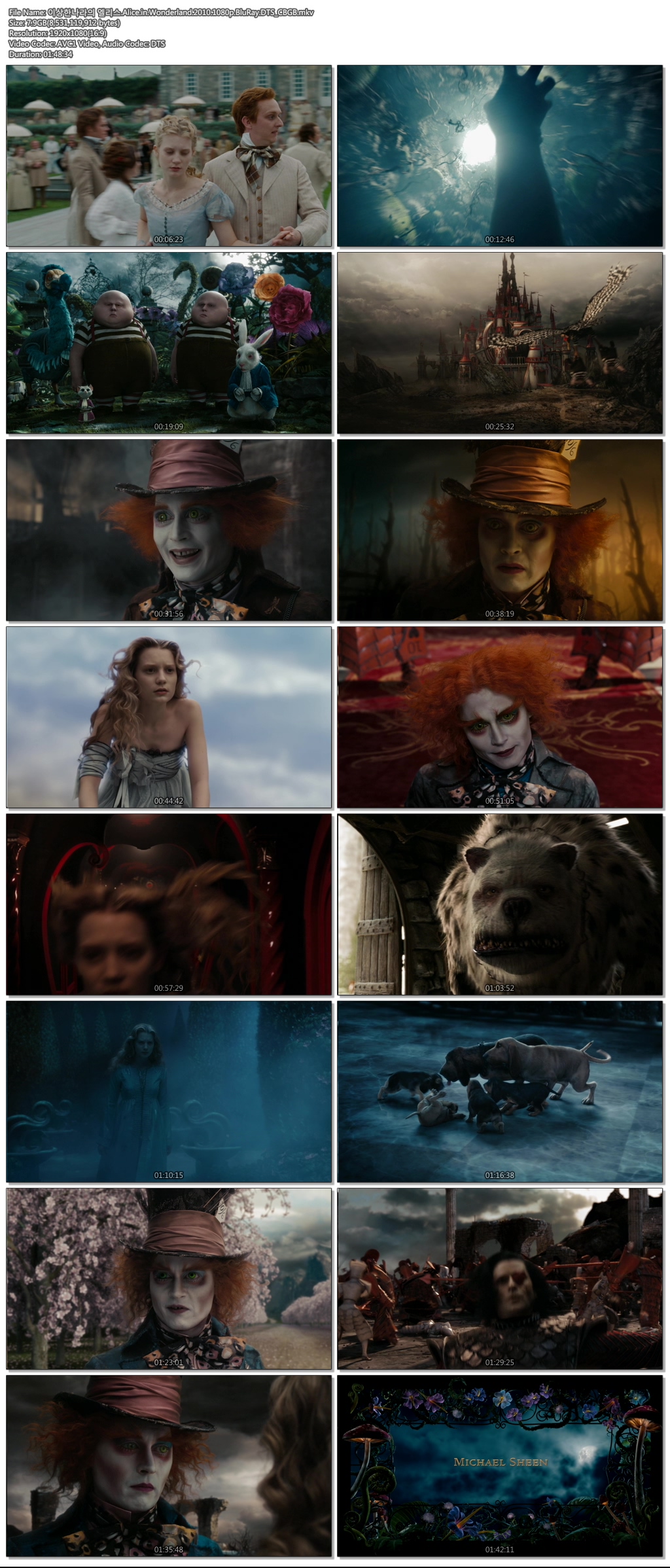 | 이상한나라의 엘리스.Alice.in.Wonderland.2010.1080p.BluRay.DTS_CBGB.mkv | 7.9 G | MKV | - | 1920x1080 |