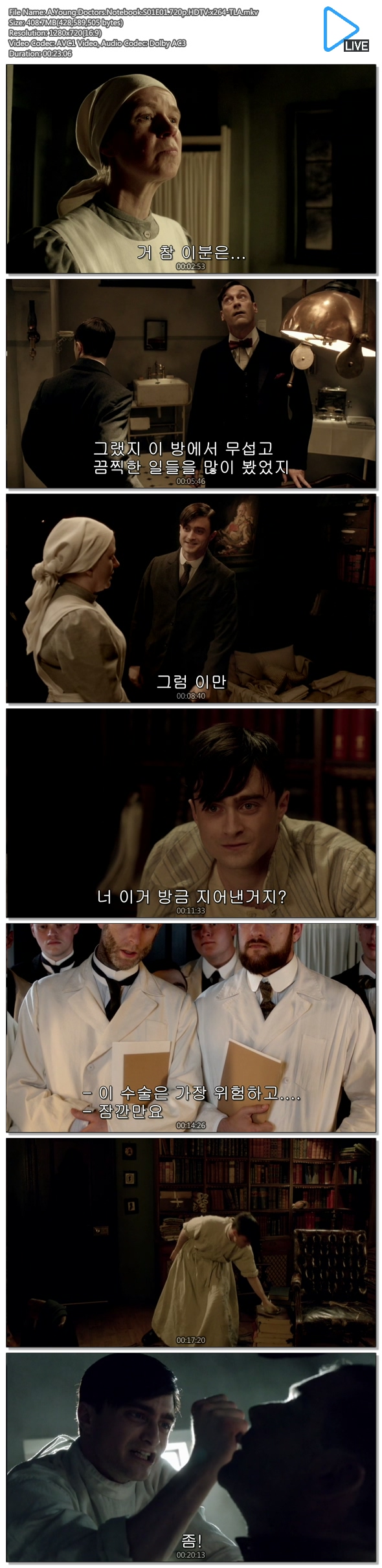 | A.Young.Doctors.Notebook.S01E01.720p.HDTV.x264-TLA.mkv | 408.7 M | MKV | - | 1280x720 |