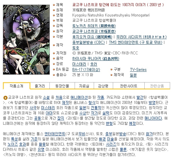 | 쿄고쿠 나츠히코 항간에 떠도는 100가지 이야기 第01話 [640x480].avi | 594.3 M | AVI | - | - |