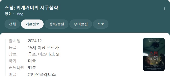 12월 개봉예정 빨리받자 스팅 2024 기모찌/