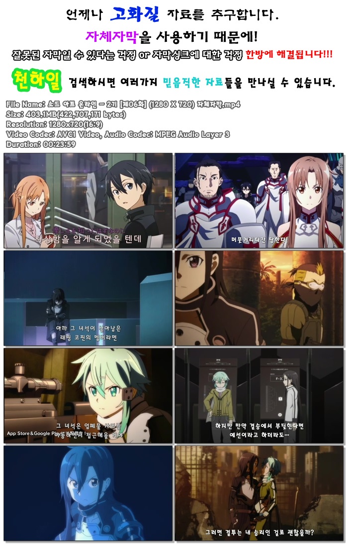 [천하일] [소드 아트 온라인-2기].06화, 720p 고화질 자체자막 Sword Art Online 소아온 sao II