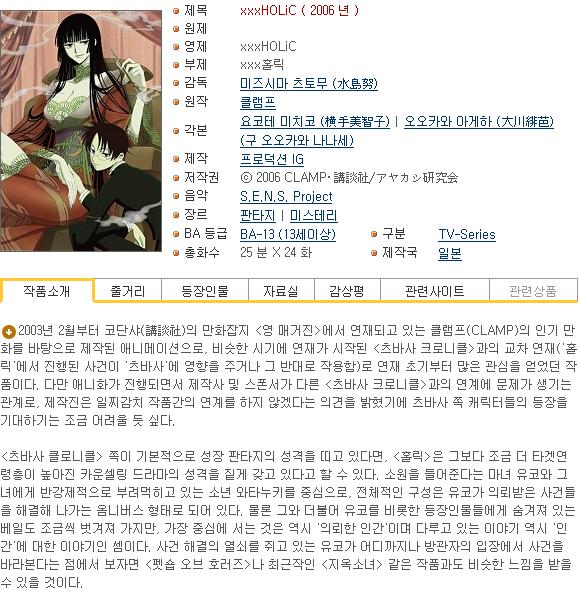 | xxx홀릭 xxxHOLiC 06화_800x450 XviD [DVD].avi | 262.5 M | AVI | - | - |