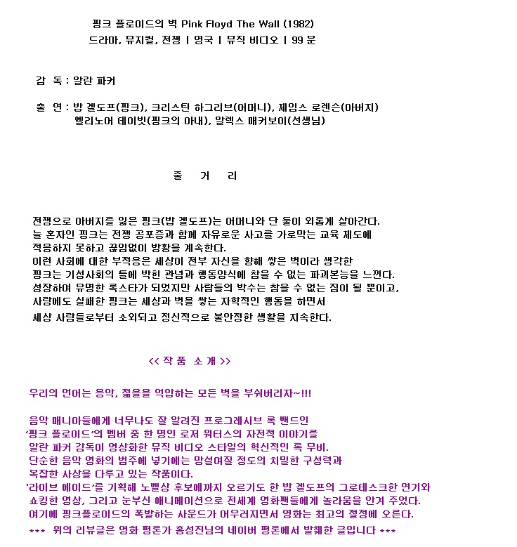[HDTV 1080P] The Wall(영어자막) - 핑크 플로이드의 걸작을 고화질로 만나보세요