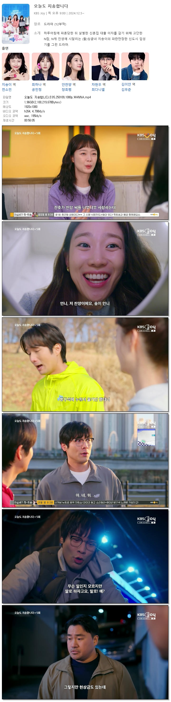 [KBS JOY] 오늘도 지송합니다.E05.250109.1080p.WANNA[전소민, 공민정]