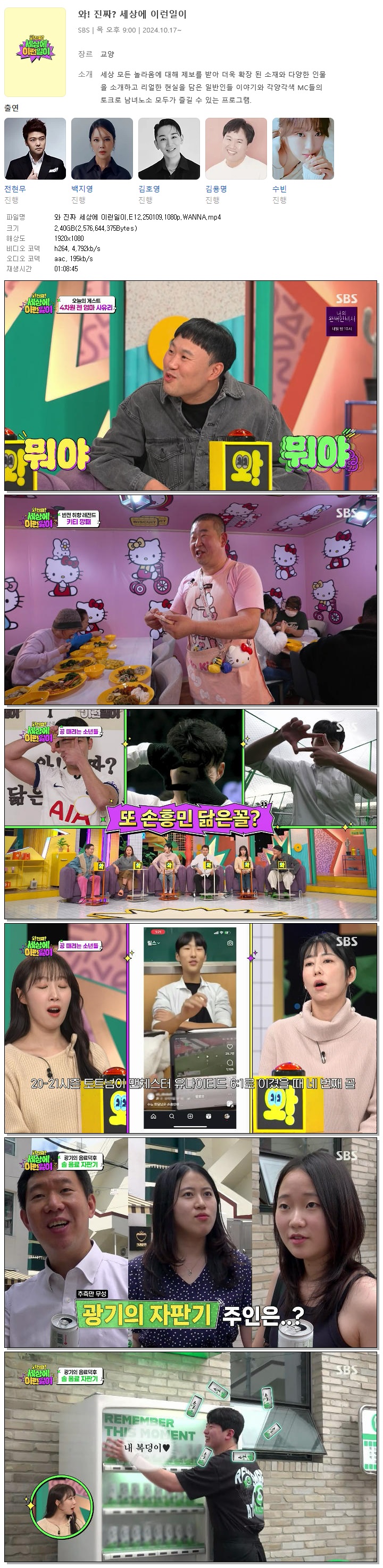 [SBS] 와 진짜 세상에 이런일이.E12.250109.1080p.WANNA[전현무, 백지영]
