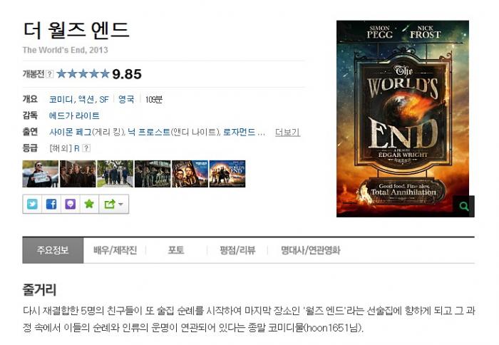 | 더 월즈 엔드.The.Worlds.End.2013.720p.BluRay.x264.DTS-SPARKS.mkv | 4.4 G | MKV | - | 1280x720 |