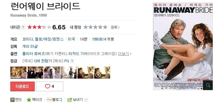 [ 런어웨이 브라이드 ] - 코미디,멜로.1999 리차드기어 줄리아로버츠/
