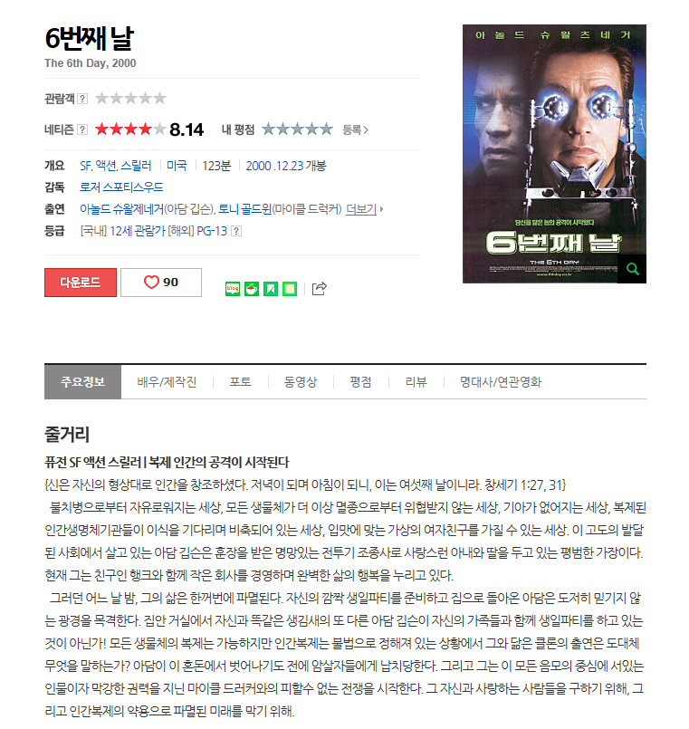 [액션, SF, 스릴러] 6번째 날 아놀드 슈워제네거 주연 (한글자체자막)