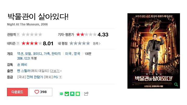 박물관이 살아있다 1 (Night At The Museum, 2006년) 1080p/