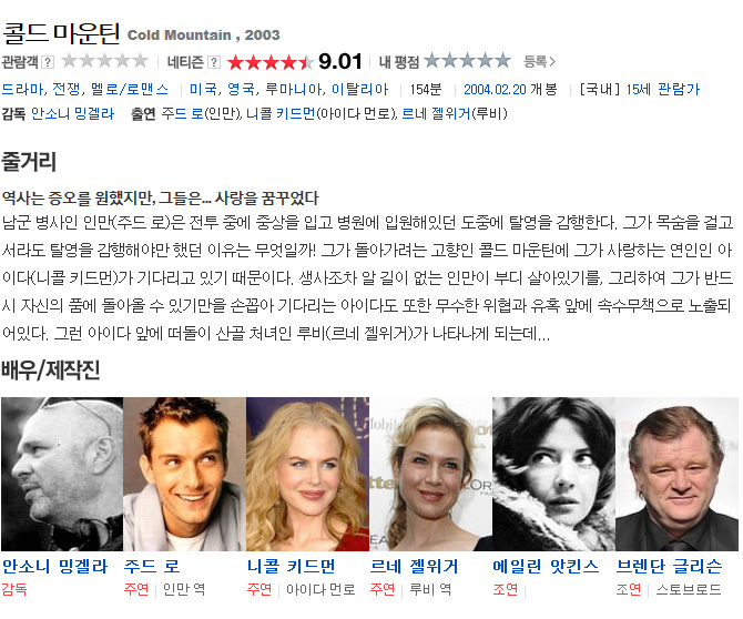 [콜드 마운틴] Cold Mountain.2003 세상은 증오를 원하였고 그들은 사랑을 꿈꾸었다