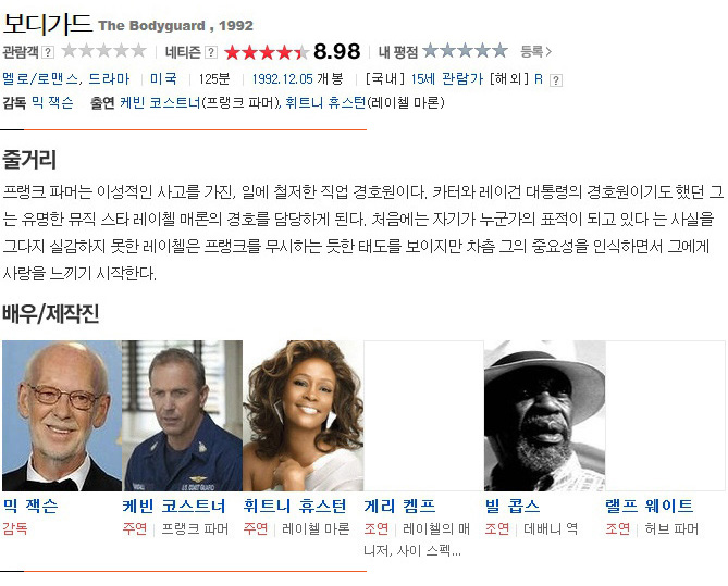 [추억멜로][보디가드]1992 영원한 디바 휘트니 휴스턴의 주옥의 ost가 살아있는 영화