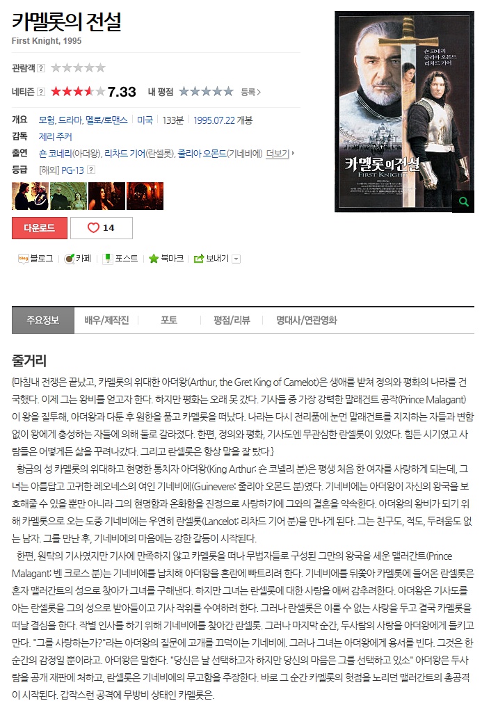 [고화질] 카멜롯의 전설(1995, 자체자막)