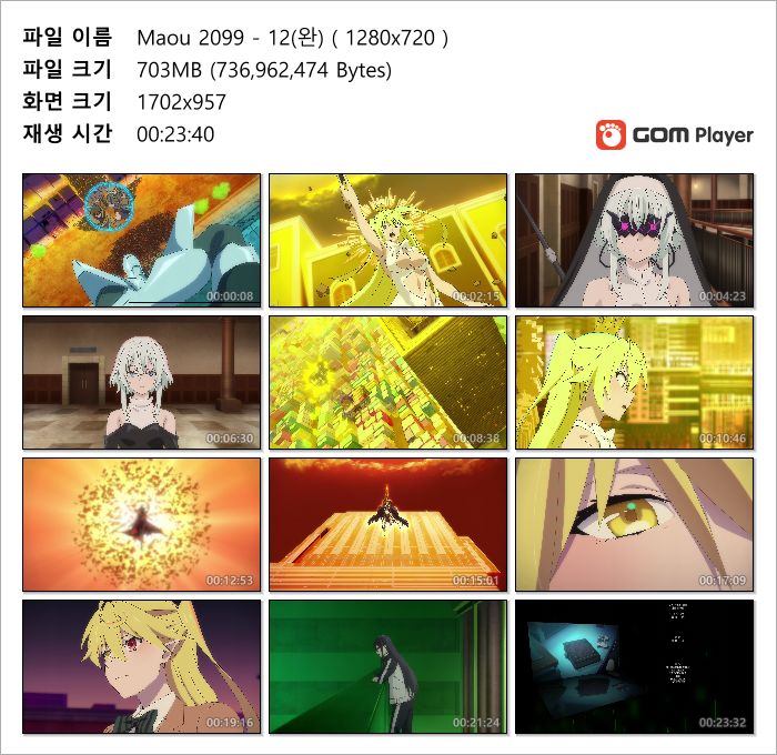 | Maou 2099 - 12(완) ( 1280x720 ).mkv | 702.8 M | MKV | 00:23:40 | 1280x720 |