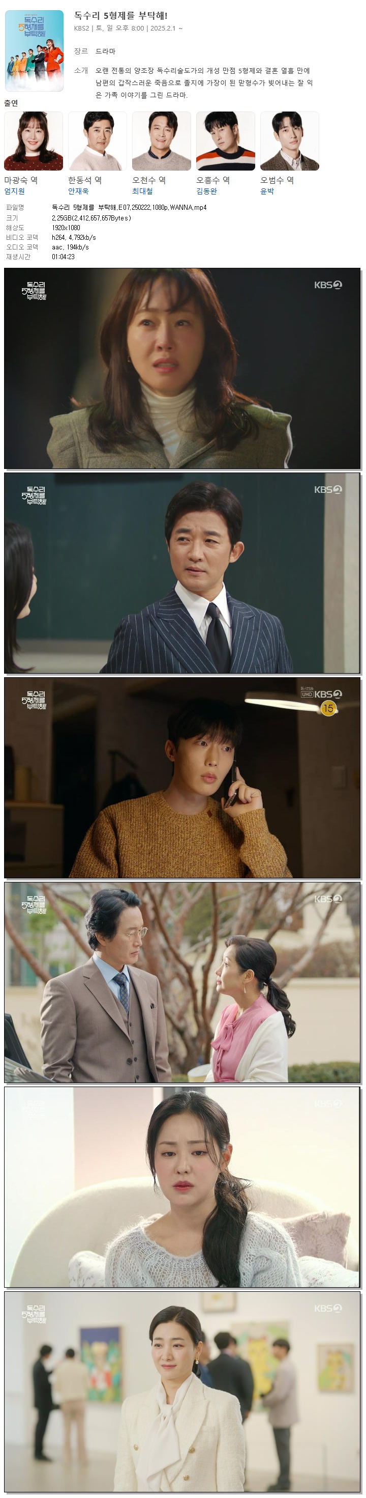 [KBS2] 독수리 5형제를 부탁해.E07.250222.1080p.WANNA[엄지원, 안재욱]