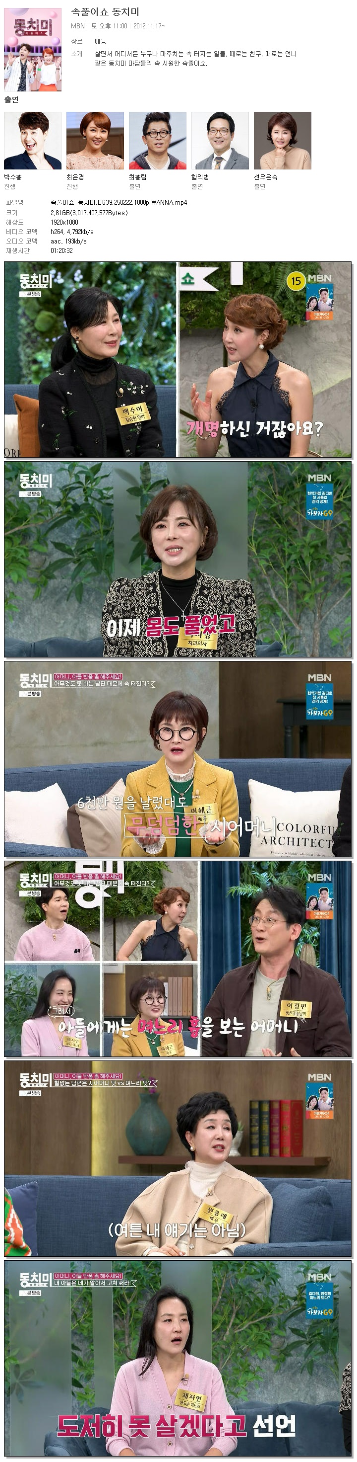 [MBN] 속풀이쇼 동치미.E639.250222.1080p.WANNA[이혜정, 김승현]