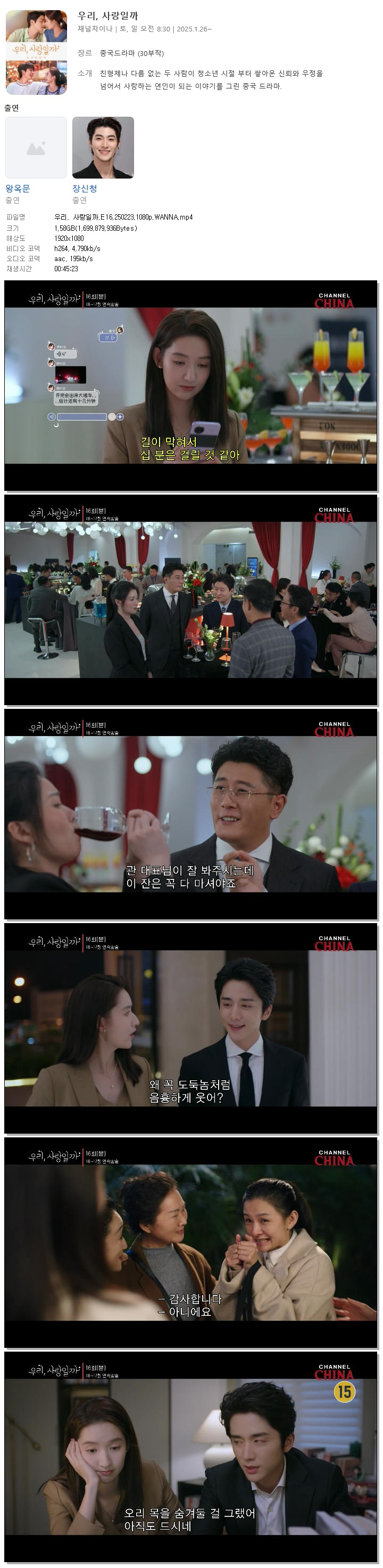 [채널차이나] 우리, 사랑일까.E16.250223.1080p.WANNA[장신청, 왕위원]