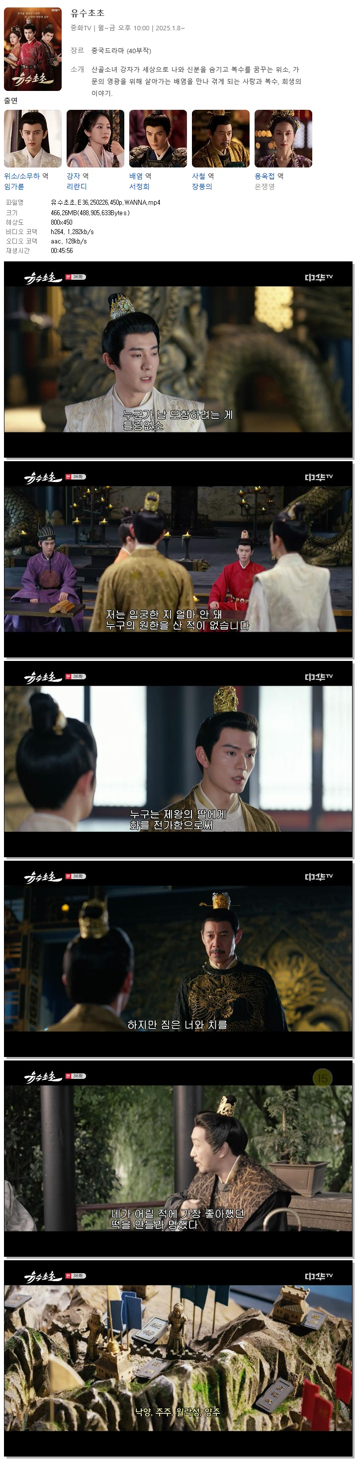 [중화TV] 유수초초.E36.250226.450p.WANNA[임가륜, 리란디]