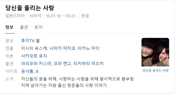 | 당신을 울리는 사랑 10화.mkv | 1.2 G | MKV | 00:45:47 | 1920x1080 |