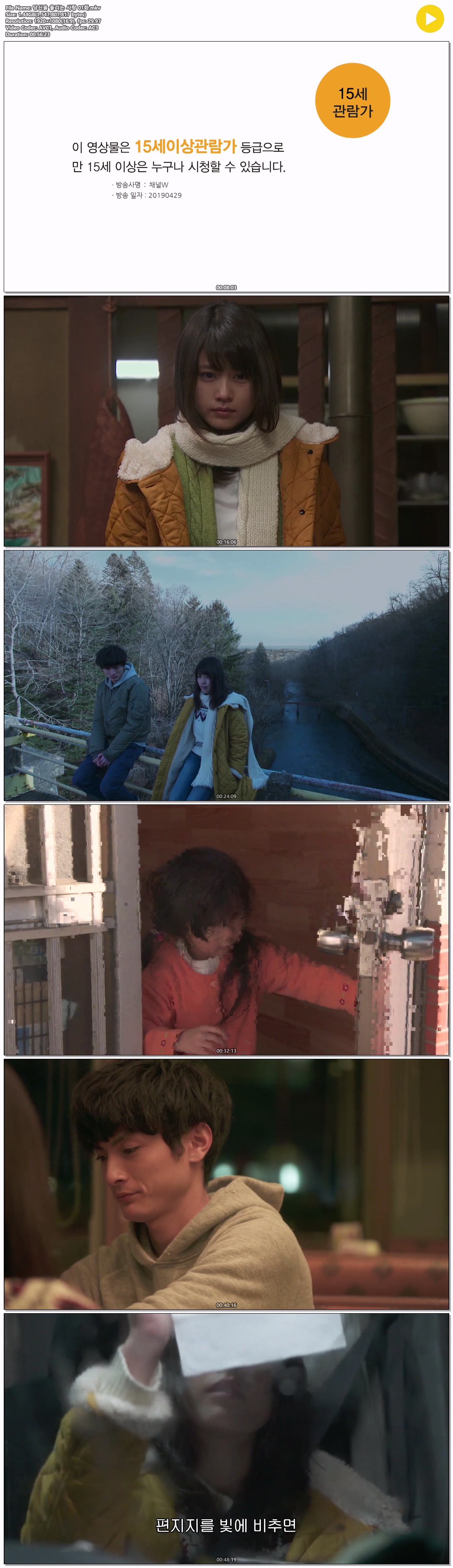 | 당신을 울리는 사랑 01화.mkv | 1.4 G | MKV | 00:56:23 | 1920x1080 |