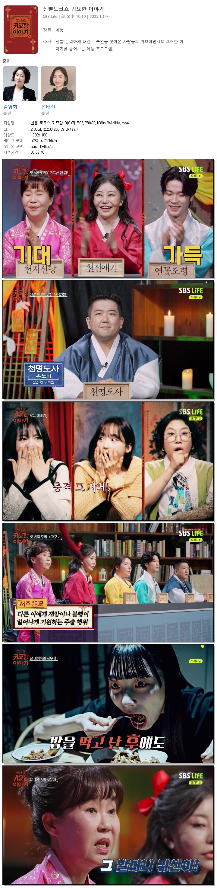 [SBS LIFE] 신빨 토크쇼 귀묘한 이야기.E08.250429.1080p.WANNA[김영희, 윤태진]