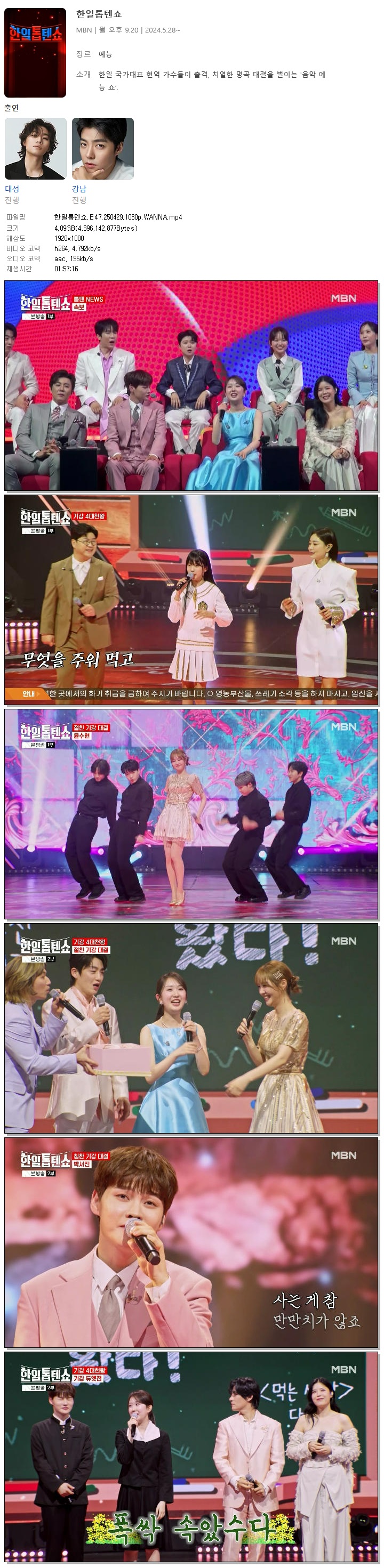 [MBN] 한일톱텐쇼.E47.250429.1080p.WANNA[박서진, 진해성]