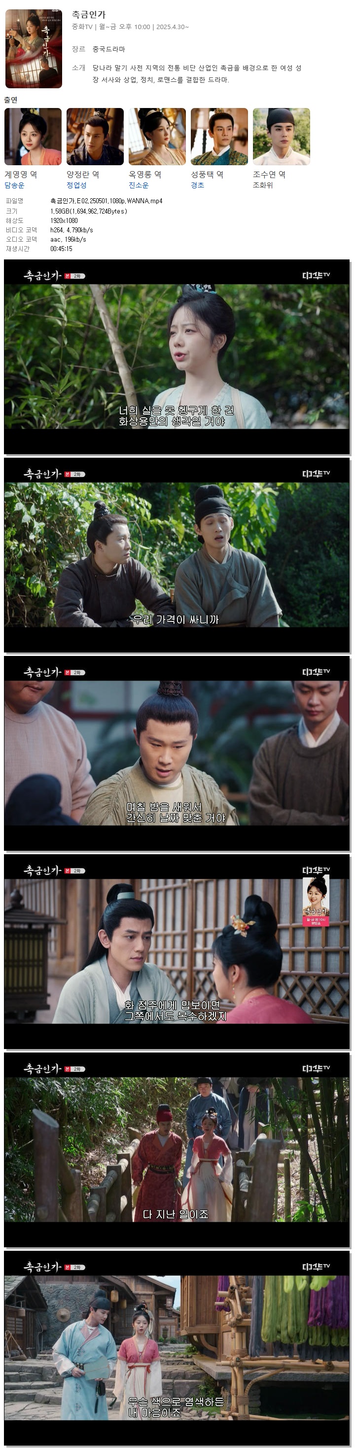 [중화TV] 촉금인가.E02.250501.1080p.WANNA[담송운, 정업성]