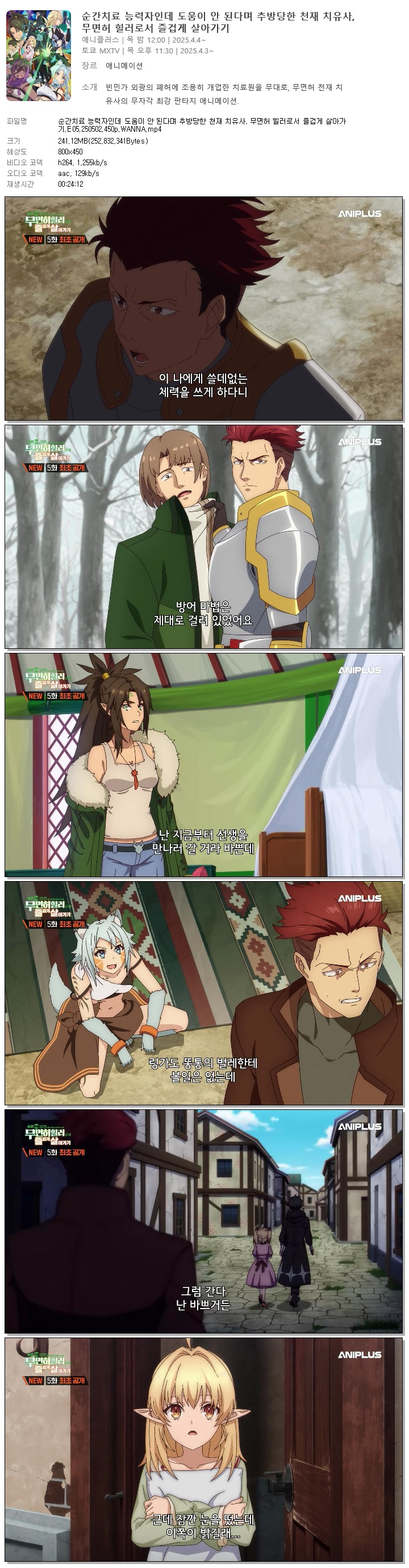 순간치료 능력자인데 도움이 안 된다며 추방당한 천재 치유사, 무면허 힐러로서 즐겁게 살아가기.E05.250502.450p.WANNA