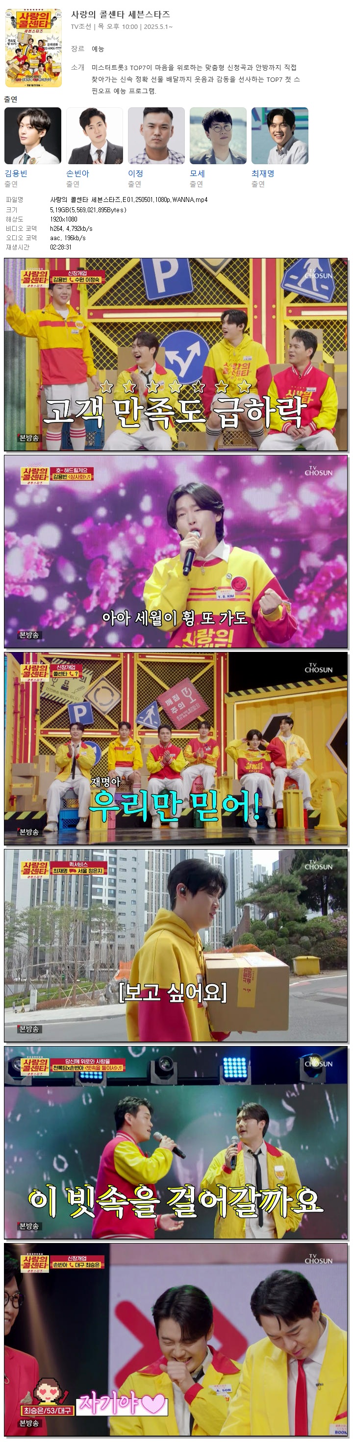 [TV조선] 사랑의 콜센타 세븐스타즈.E01.250501.1080p.WANNA[김용빈, 손빈아]