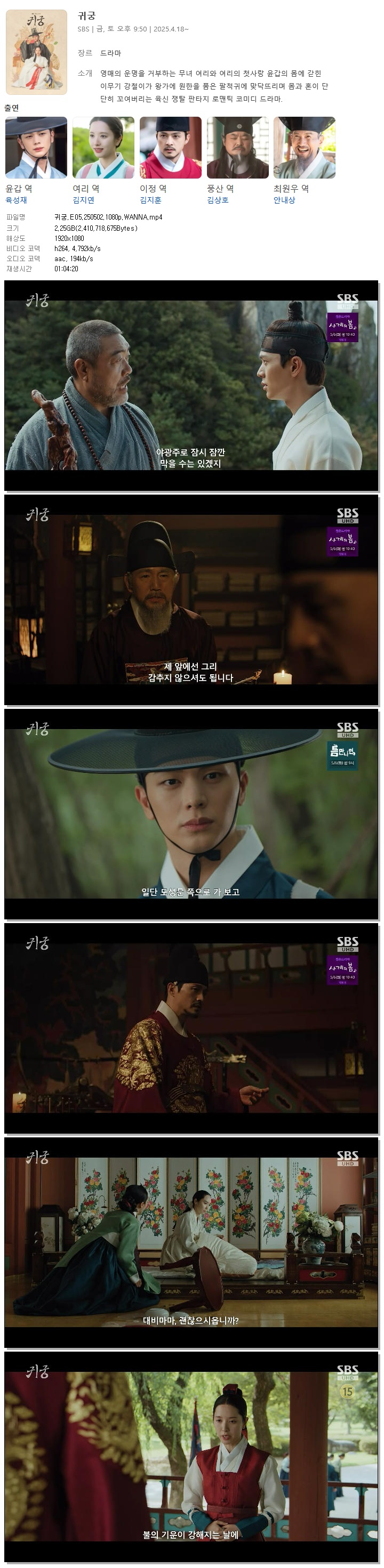 [SBS] 귀궁.E05.250502.1080p.WANNA[육성재, 김지연]