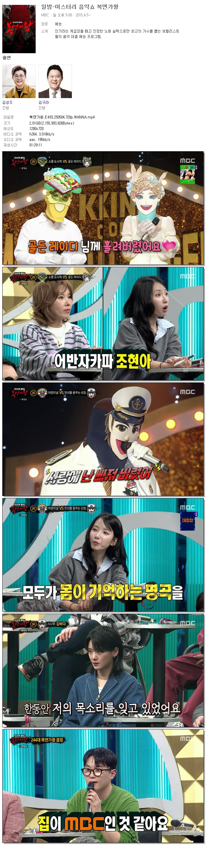 [MBC] 복면가왕.E493.250504.720p.WANNA[정동하, 윤상]